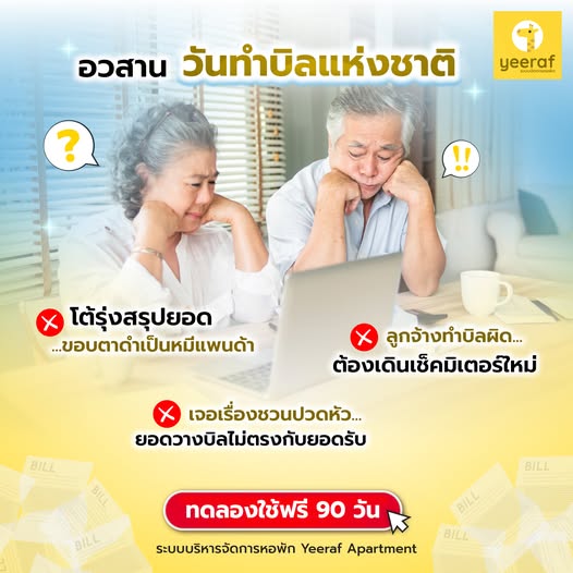 อวสาน “วันทำบิลแห่งชาติ” Yeeraf Apartment เอาอยู่! คุณคือหนึ่งใน เจ้าของหอพัก อพาร์ทเม้นท์ คอนโด ที่เคยเจอปัญหาการทำ บิลค่าห้อง จนปวดหัวใช่ไหม?ไม่ว่าจะเป็น…ต้องนั่งโต้รุ่งทำบิลจนขอบต
