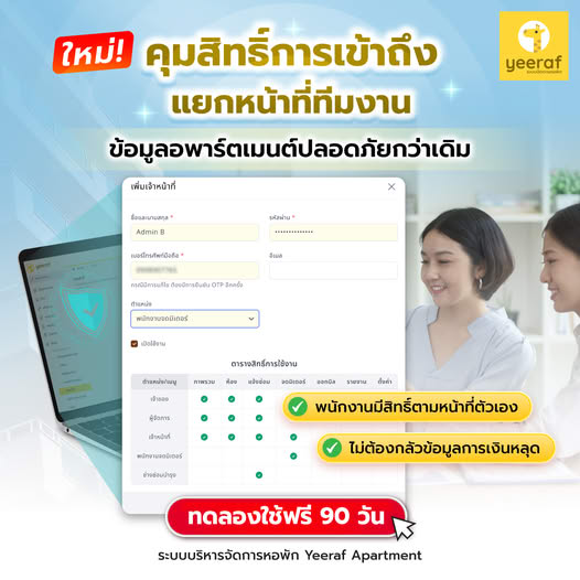 Yeeraf Apartment ระบบจัดการหอพัก อพาร์ทเม้นท์ ออนไลน์ สำหรับเจ้าของหอพัก การบริหารหอพัก อพาร์ทเม้นท์ หรือคอนโดในยุคปัจจุบัน ไม่ใช่เรื่องง่ายเหมือนในอดีตอีกต่อไป เจ้าของหอพักจำนวนมากต้องเผชิญกับความท้า